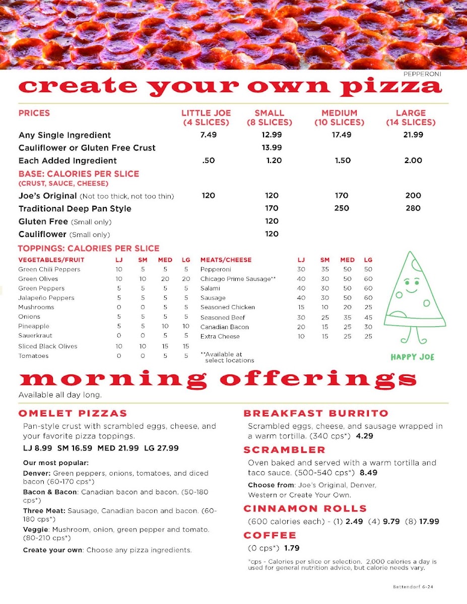 Tomatoes, green peppers, onions, mushrooms, black olives, and sauerkraut. Available on original thin crust, pan, gluten-free, or cauliflower crust.